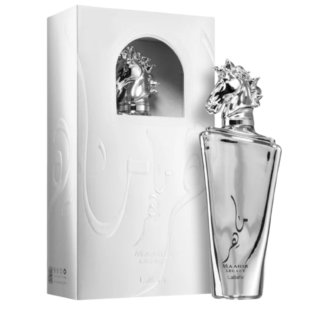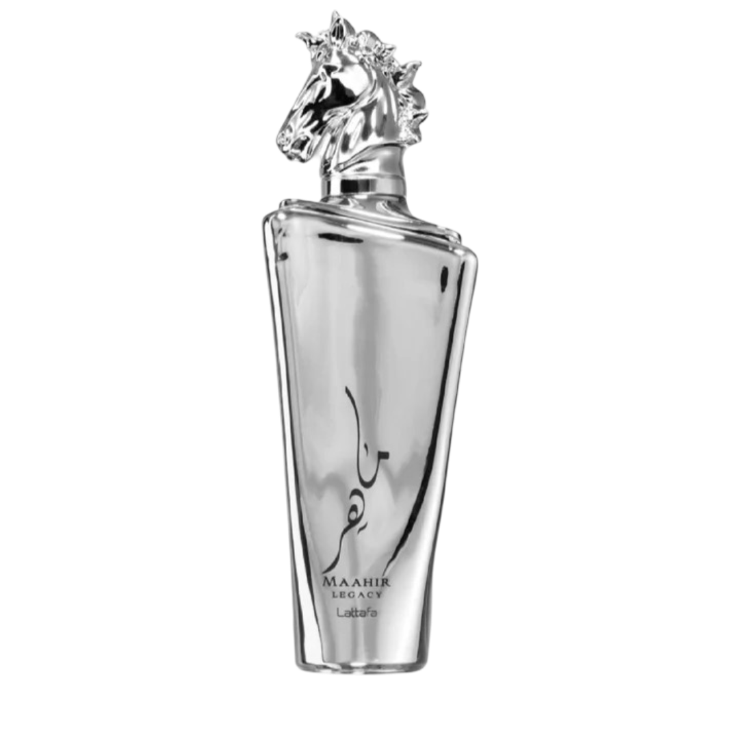 Maahir Legacy by Lattafa Perfumes is a fragrance for men. Top notes are Lime, Mint, Grapefruit, Lavender and Pineapple; middle notes are juniper berry, Black Pepper, Rosemary, Geranium and Frankincense; base notes are Ambroxan, Oakmoss, Vetiver, Cashmeran and Tonka Bean.